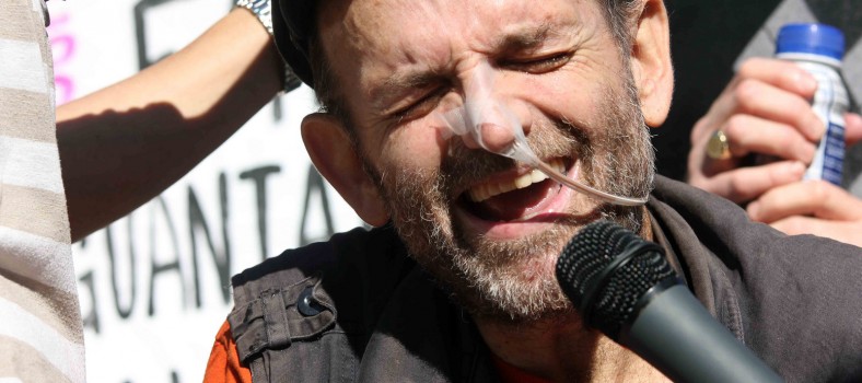 “President Obama, stop the tortuuurrre,” bellowed Andrés Thomas Conteris, as a plastic tube snaked through his nose, down his throat, and into his stomach to deliver a bottle of Ensure nutrients to his starved body. Conteris, months into a grueling fast, voluntarily submitted to the nasogastric feeding in front of the US Court of Appeals in Washington, D.C. on October 18, 2013 to underscore the brutality of the continued forced-feeding of hunger strikers at Guantánamo Bay. Throughout the feeding, which simulated what some in Guantánamo endure twice daily, Conteris gagged and wailed. Cameras snapped. Observers winced.