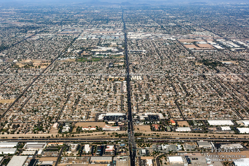 In one of the stranger moments in modern urban geography, Phoenix grew during the cold war because moving key military-industrial away from the North East the deserts of the West reduced the number of civilian casualties in the event of a nuclear strike. Motorola, Honeywell, Sperry-Rand, GE, Kaiser, and other cold war contractors built facilities, making Phoenix is a key part not so much of the sunbelt as the gunbelt.