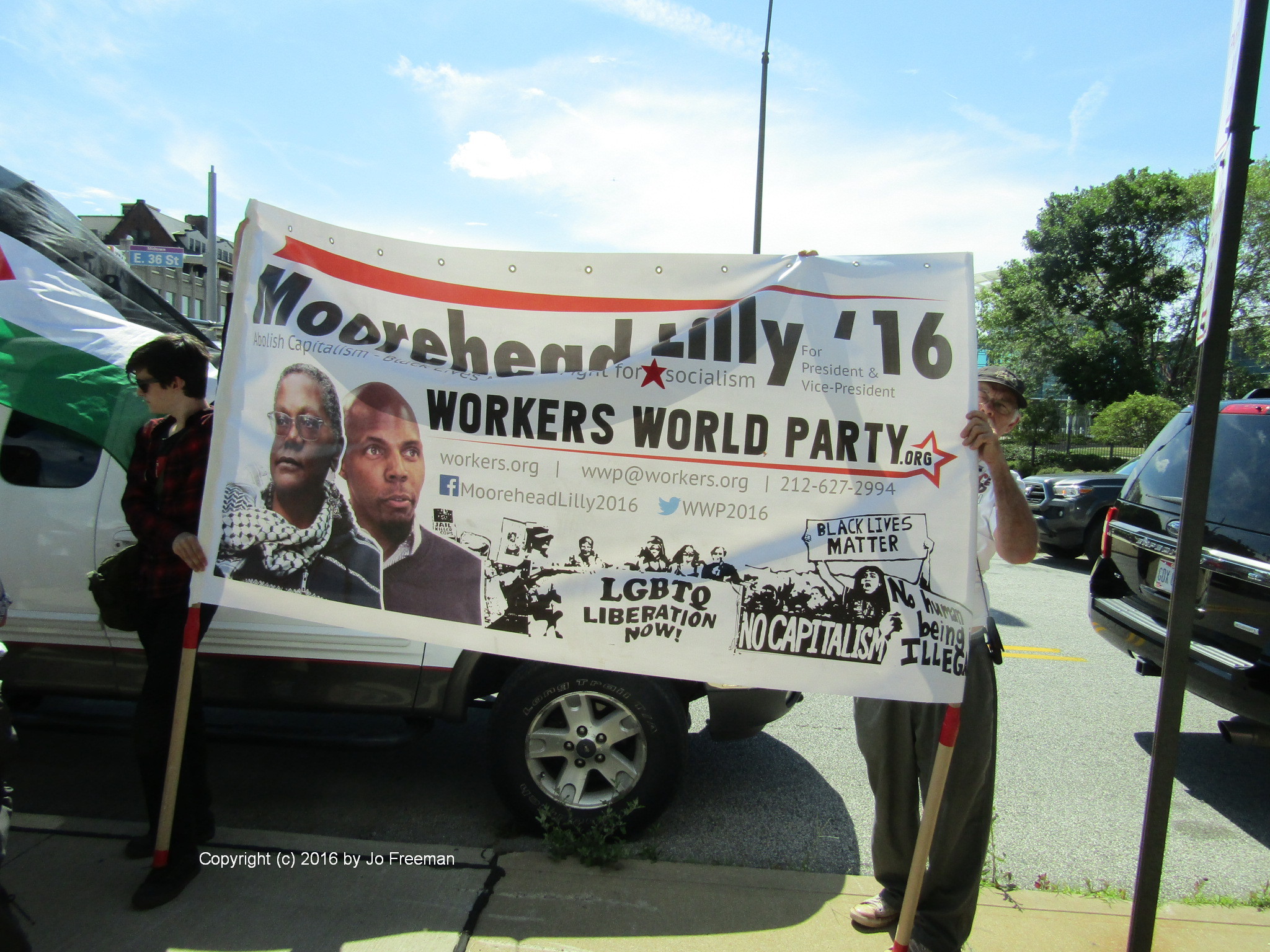At 4:00 on Sunday afternoon, about 200 people gathered about 3 miles from downtown Cleveland to hear speakers from a truck parked on the street proclaiming the Worker’s World Party’s presidential ticket of Monica Moorehead and Lamont Lilly. They didn’t have a permit, according to the Cleveland police who arrived shortly thereafter.