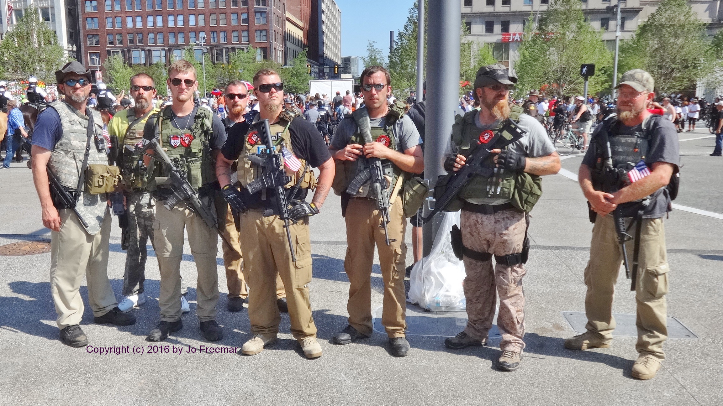 Some of the leftie protestors got into a shouting match with them. They ignored the guys walking around with rifles slung over their shoulders to demonstrate their support for Ohio’s open carry law.
