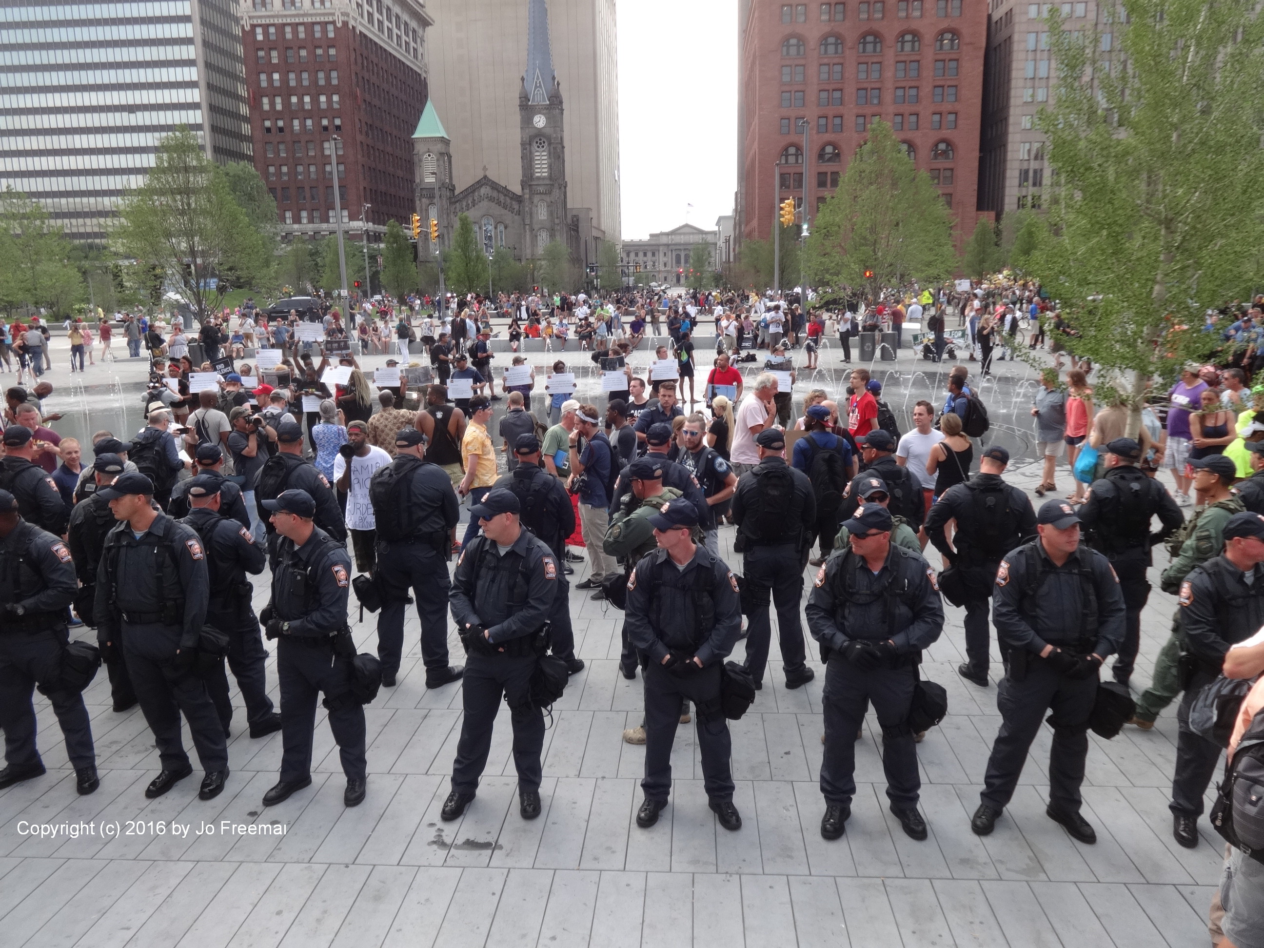 Cleveland had more cops than protestors, which left them with little to do. Most of the time hundreds of cops stood around Cleveland’s Public Square keeping groups apart.