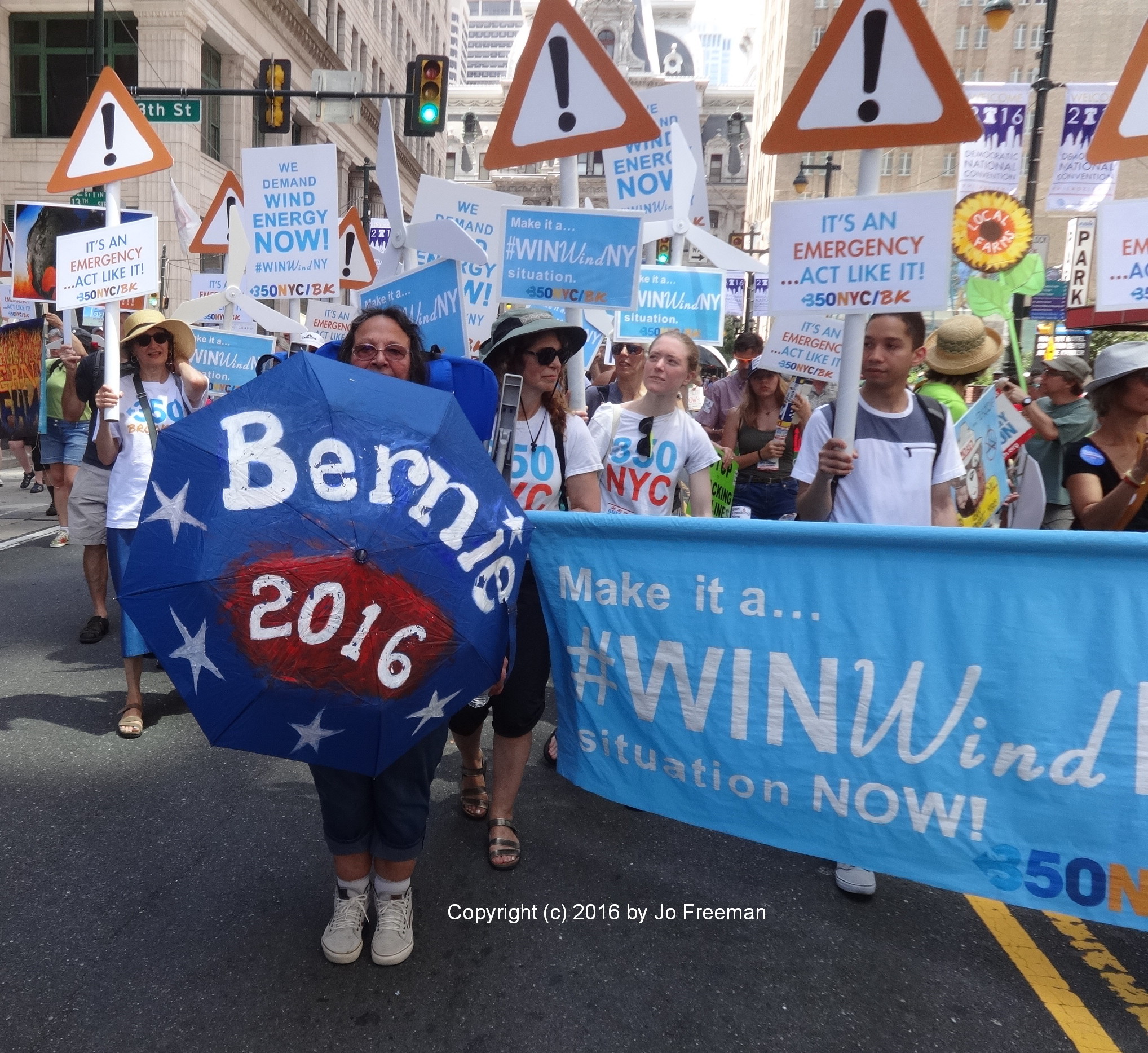 The unofficial protest zone in Philadelphia was around City Hall, usually on the shadiest side for that time of day. Marches began from there. On Sunday about five thousand people walked 4 miles to FDR park in 90 degree heat. While “Climate” was the purpose of this march, it was full of Berniers carrying dual use signs and t-shirts.