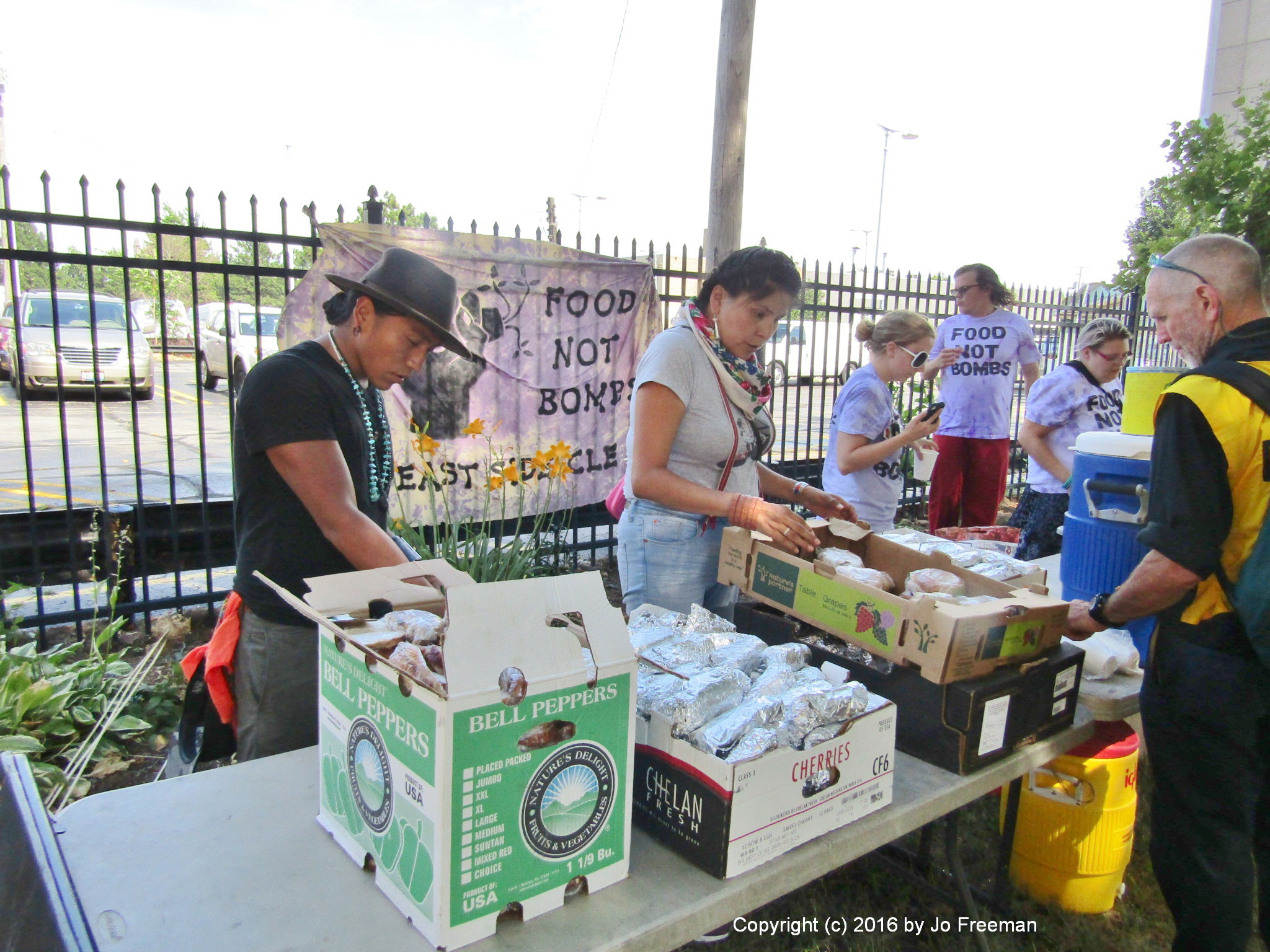 Support services for protestors were present at both conventions. Food not Bombs did a fine job of feeding them healthy vegan fare.