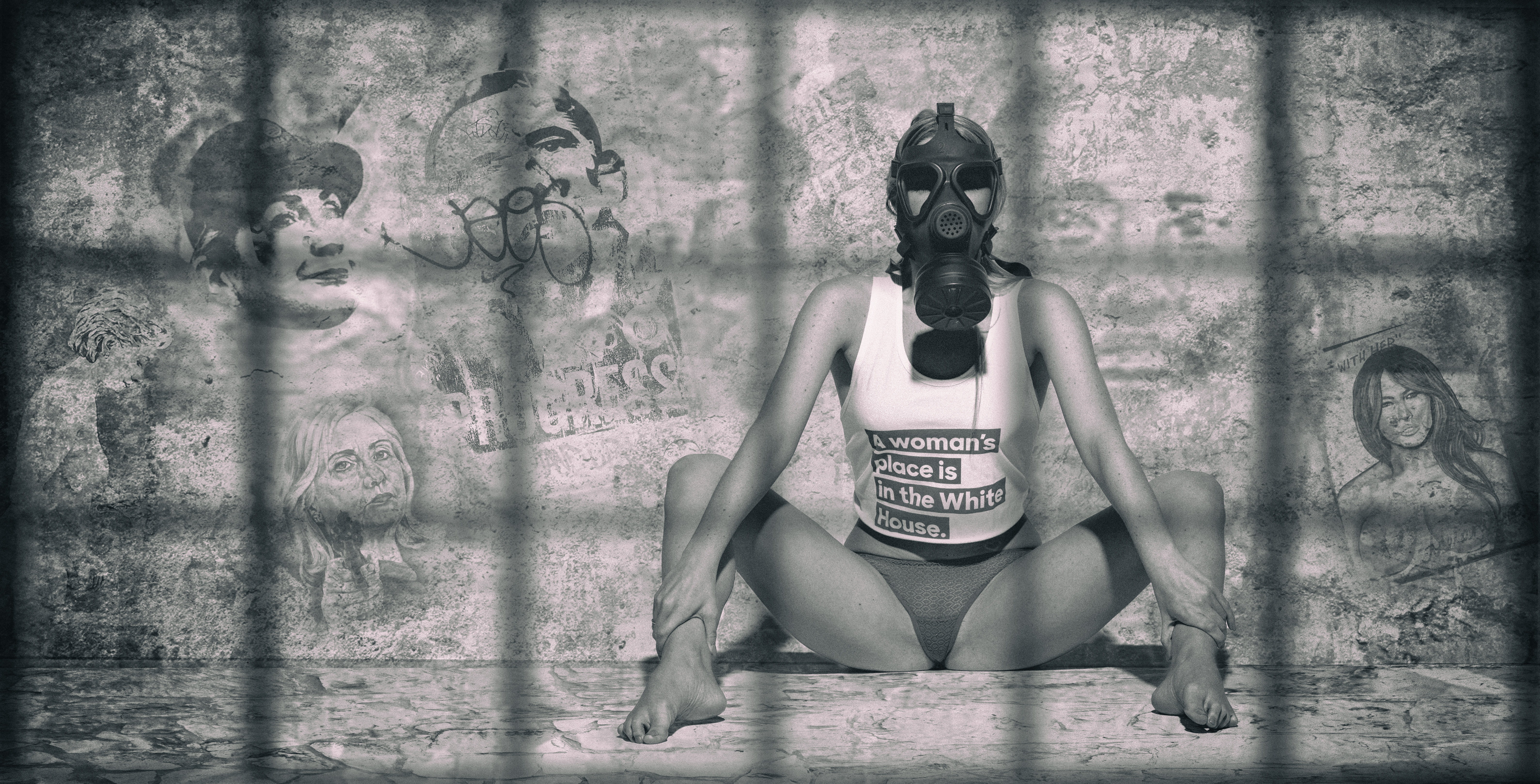 Though Trump lost 5 points in polls since the 2005 tape was released just one week ago (and 12 points among women over 45) the tough pill to swallow is that 38% of American voters still stand in support of the GOP candidate, despite not only allegations of sexual misconduct but outright incontrovertible evidence. (And personal communiqués on my Facebook page from childhood friends, male, staunchly report Trump to be the ‘lesser of two evils’ and deny that any ‘actual harm’ has been done.) Interestingly, Trump sails over Clinton by 25 points amongst white men without college degrees, and this subset of the population has complained that society is becoming ‘soft’ — parroting the tired trope that equates power with aggression, and femininity with weakness and passivity. Much of this same population regards women’s equality and gains in the workplace as discrimination against men. What is revealed through not only the tolerance of Trump’s antics and the defiant celebration of his crude and exploitive behavior, but also in the genuine surprise amongst many well-meaning men, is the banal prevalence of misogyny, suppression of women’s voices and experience, and cavalier acceptance of aggression toward women. We may be legitimately horrified, and agree with President Obama that basic human decency would lead us to shun Trump’s words and actions, but the fact that this candidate appeals to a good portion of the population must not fade into the background, nor the fact that men on the side of good had no real sense of their own blindness to these pervasive phenomena. Let us be clear: Trump is a symptom, not a gross aberration. Beyond the vacuous promise of jobs and revived greatness, Trump speaks to an enduring sexist aggression and entitlement, building in step with feminist gains of recent decades (no doubt analogous to xenophobic hatred of ‘job-stealing’ immigrants). As Olga Khazan wrote in the Atlantic just a few days ago, “Men who fear the rise of women can bask in the reflected glory of Trump’s testosterone-revved, macho persona.” And women, like the one pictured at the Trump rally wearing the hand-made T-shirt saying “Trump can grab my…” with an arrow pointing toward her crotch, can preserve their fantasied relation to power by siding with the aggressor and likewise diminishing the gravity — and personal affront — of Trump’s behavior.