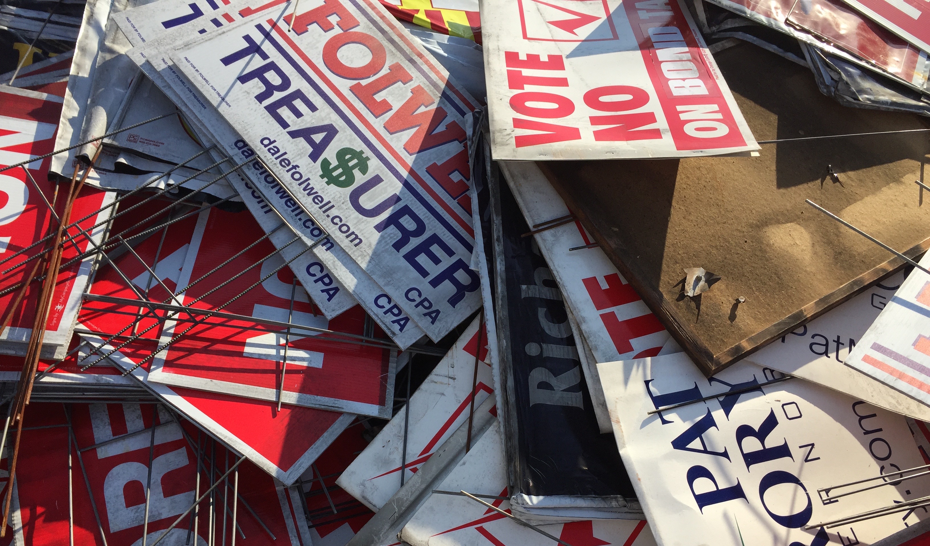 I visit the new Orange County GOP office as a young man affixes a security camera to the wall. A wooden box with the sign “donations welcome” is covered in carefully-preserved soot and sits on a putty-colored folding table at the entrance. I say hello. Eyes are wary, smiles strained. They’re keeping the box as a reminder, says a stout man sitting at the table.