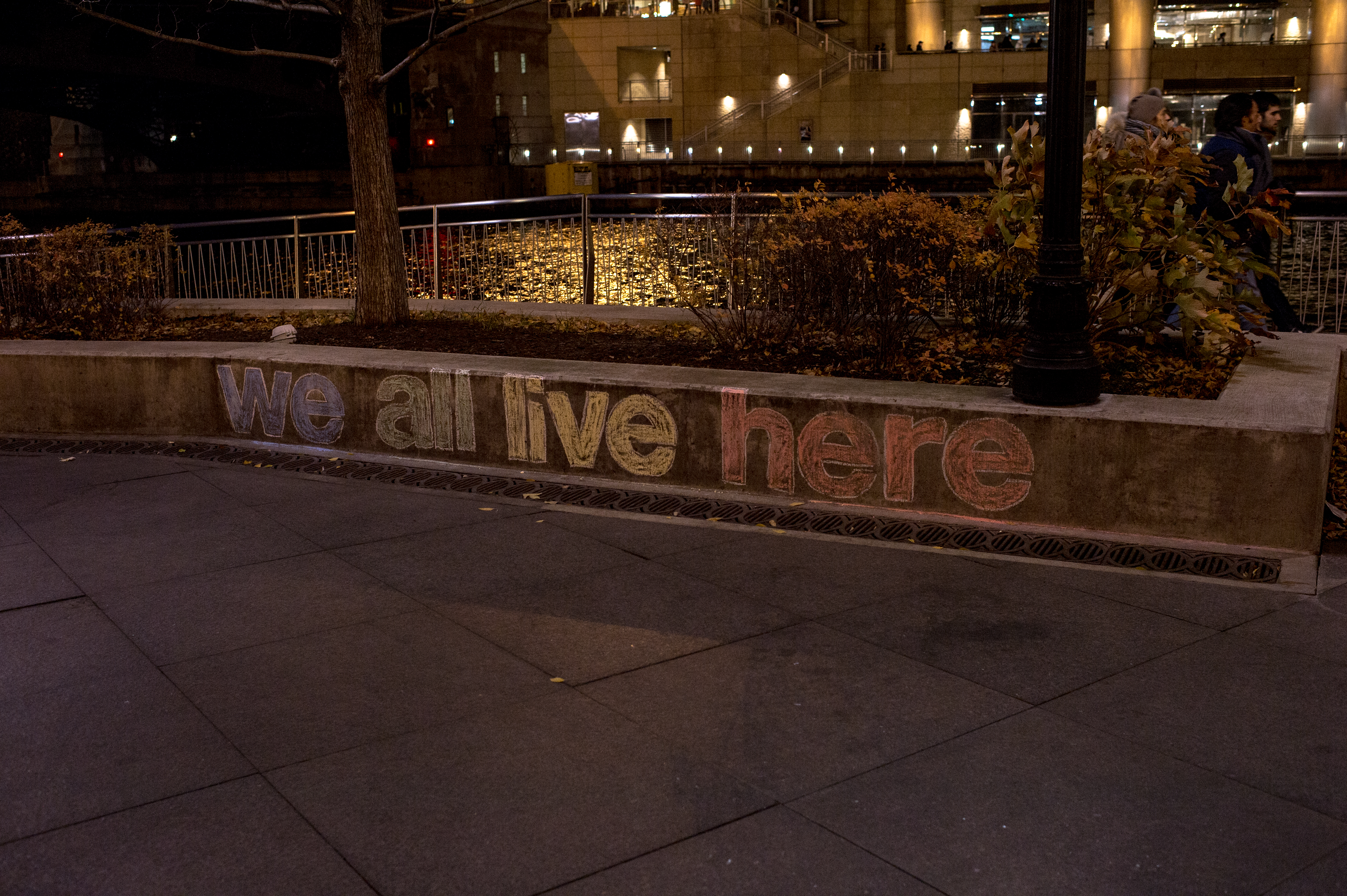 During the weeks leading up to the election, I must have seen Tammy Duckworth’s TV ads hundreds of times. One of her punchlines, a line that was supposed to sum up her generous democratic egalitarianism and contrast it with the punitive austerity of her opponent, was this: “If you don’t give up on yourself, America won’t give up on you.” Sounds good — even moving, given what Duckworth’s been through. But in the last few days of the campaign, something finally struck me about this slogan. It makes collective solidarity conditional, like a little bit of fine print in the social contract: “some restrictions may apply.” Now, in the wake of Trump’s victory, I want to consider what Duckworth’s slogan means under the weight of these first days of fear — fear about the “restrictions” that are about to be and are already being applied: from above and from below, under cover of law and under cover of darkness and in broad daylight. But to consider what her slogan means now, I have to start somewhere else.