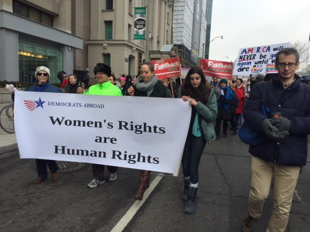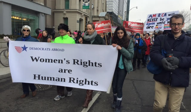I stood with my daughter at the bronze feet of John A. MacDonald, Canada’s first prime minister (and possibly the reason Canadians say ‘eh?). Daughter and I held half of the Democrats Abroad banner: ‘Women’s Rights Are Human Rights.’ A fact (not an ‘alternate’ one), though they were dull words compared to the many clever signs poking up from the crowd. A favorite: “Teach your daughters to worry less about fitting into glass slippers and more about shattering glass ceilings.” See that, husband and I said to our teenager.