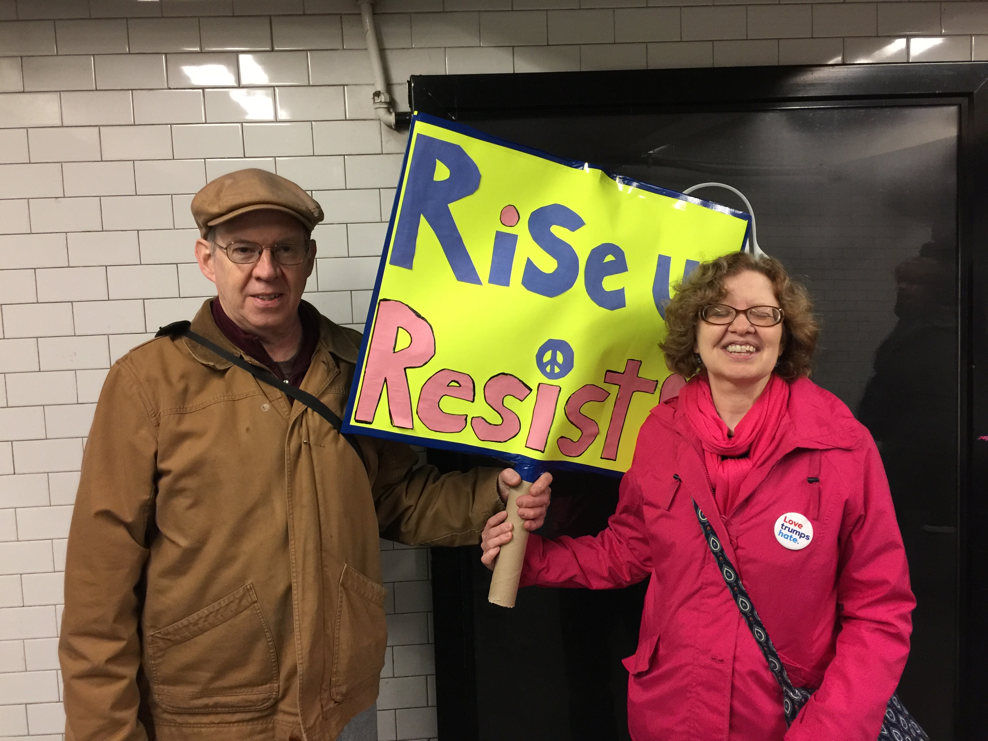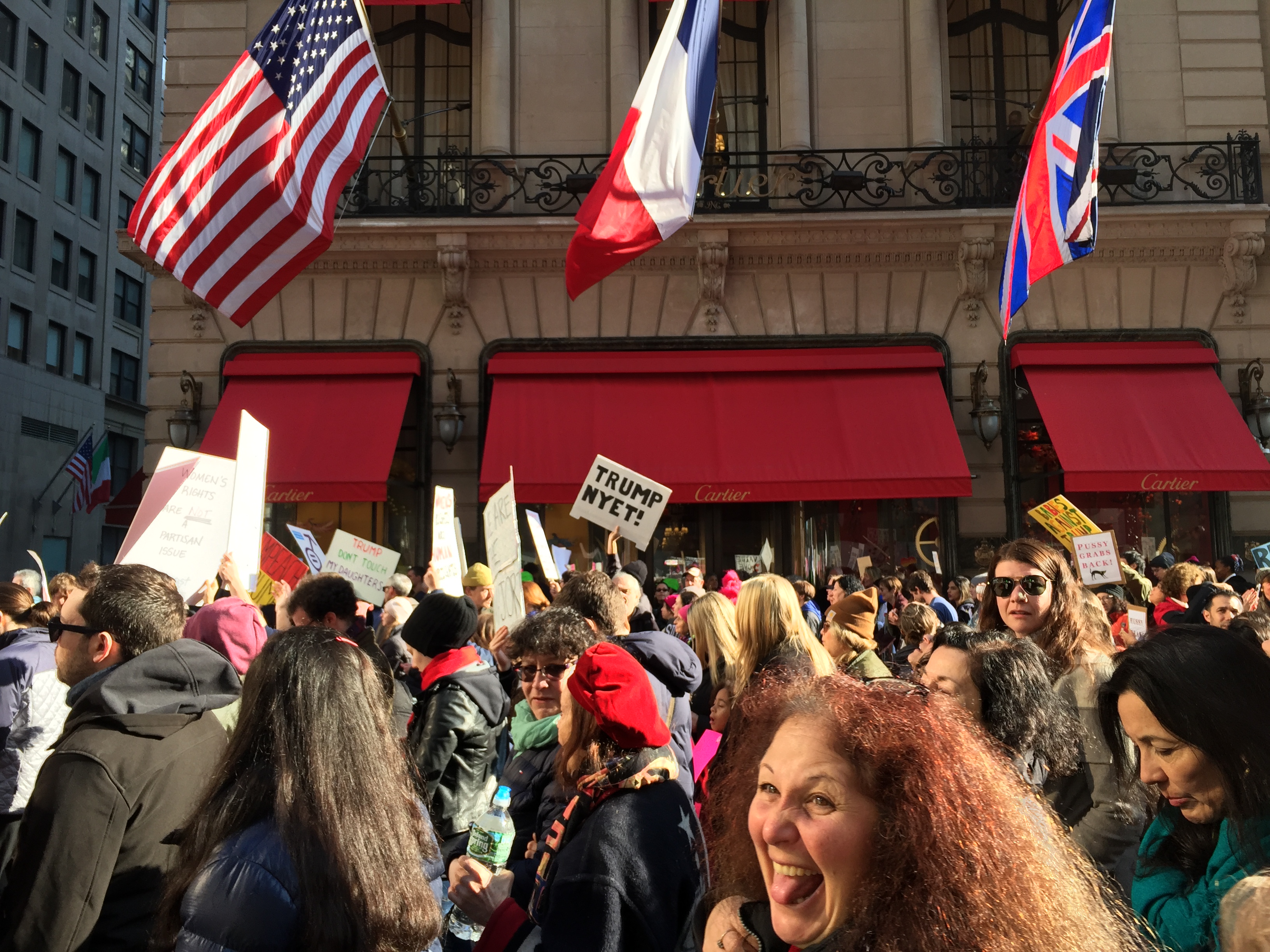 At about 1:30, I slithered into the crowd of marchers at 43rd street and Third Avenue in Midtown Manhattan. Although cars were still trying to navigate the streets of the East Side, it was a losers’ game. We were not just activists after all, we were New York activists: cars are nothing to us. We were veterans of the civil rights movement, women’s liberation, the antiwar movement and the Mobe, gay liberation, ACT-UP, #BlackLivesMatter, and Occupy. We have participated in at least a dozen marches on Trump Tower and other Trump-branded buildings since The Donald became president-elect of the United States in the wee hours of November 9 2016.