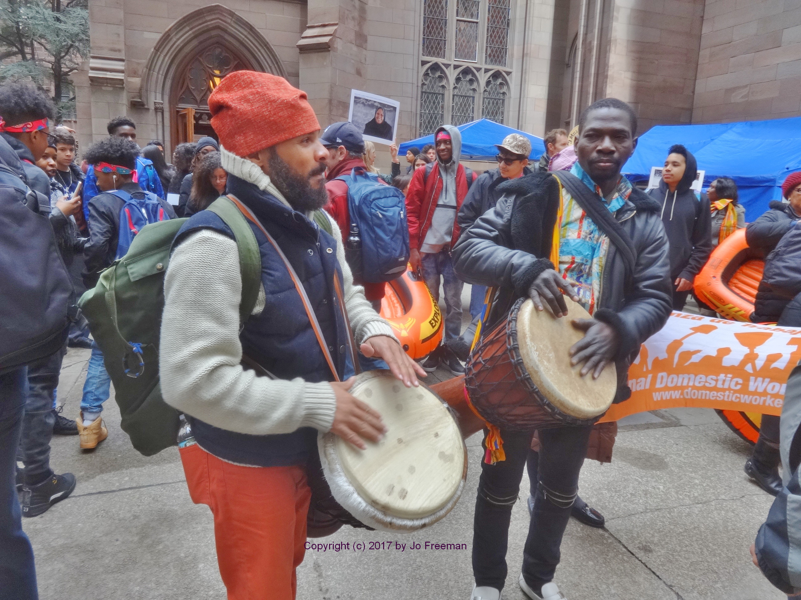 On Tuesday they marched from the Trump Building at 40 Wall Street to Trinity Church where they vigiled well into the night. On Wednesday they marched from Trinity Church to the federal building, stopping for a rally at the African Burial Ground National Monument.