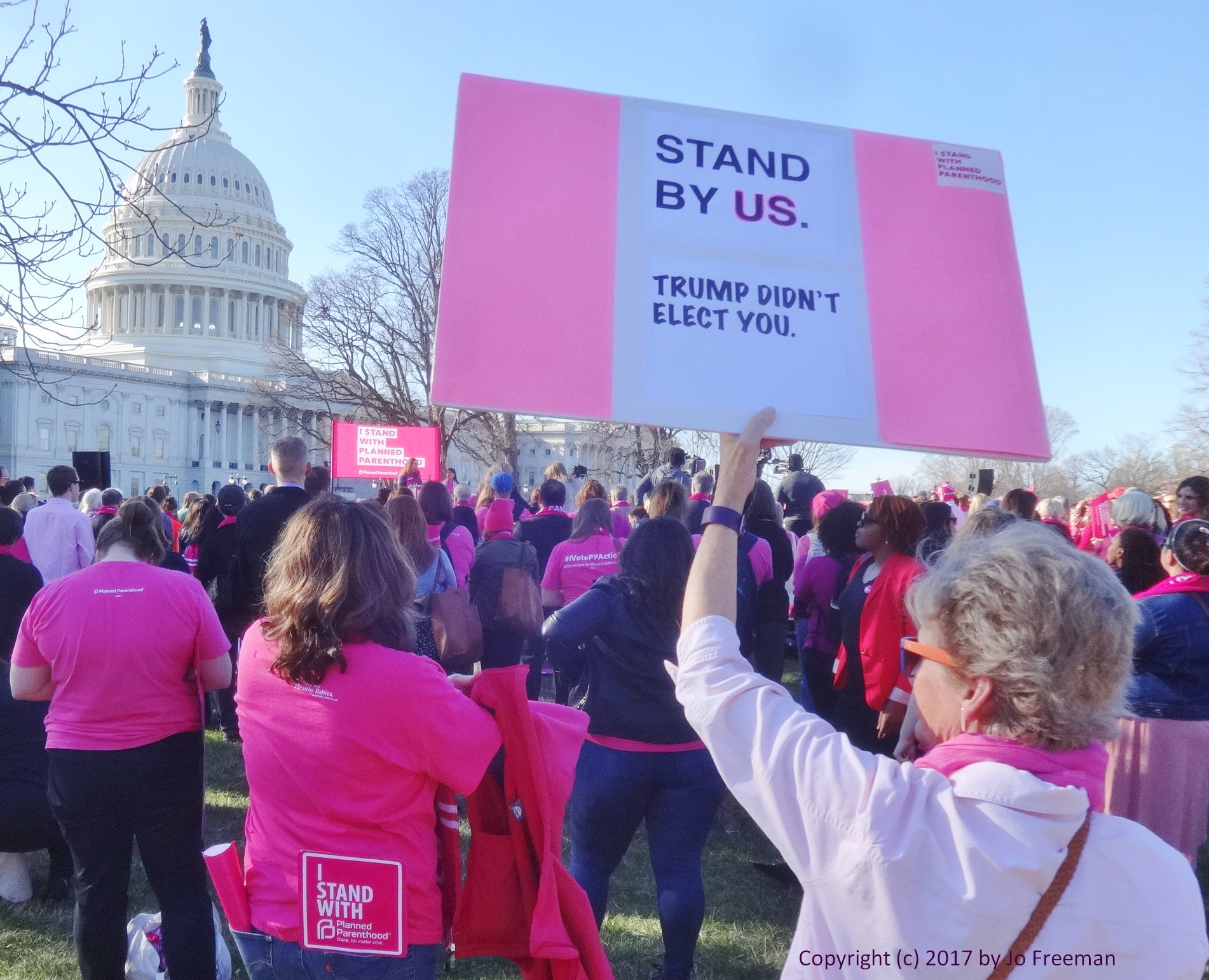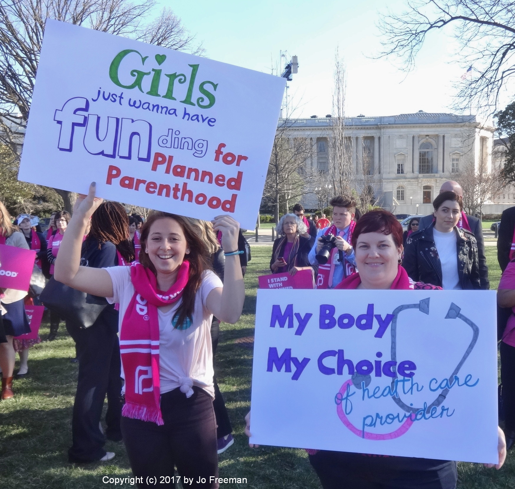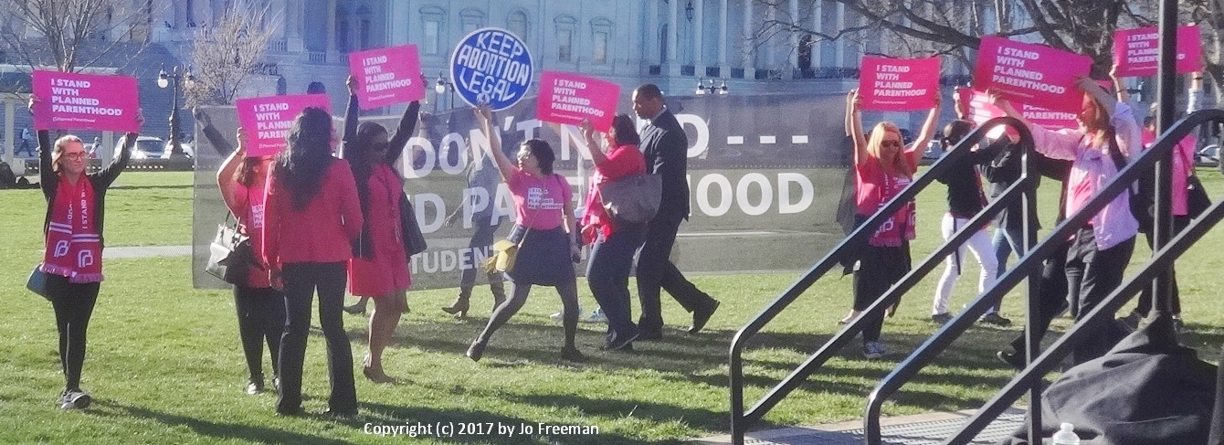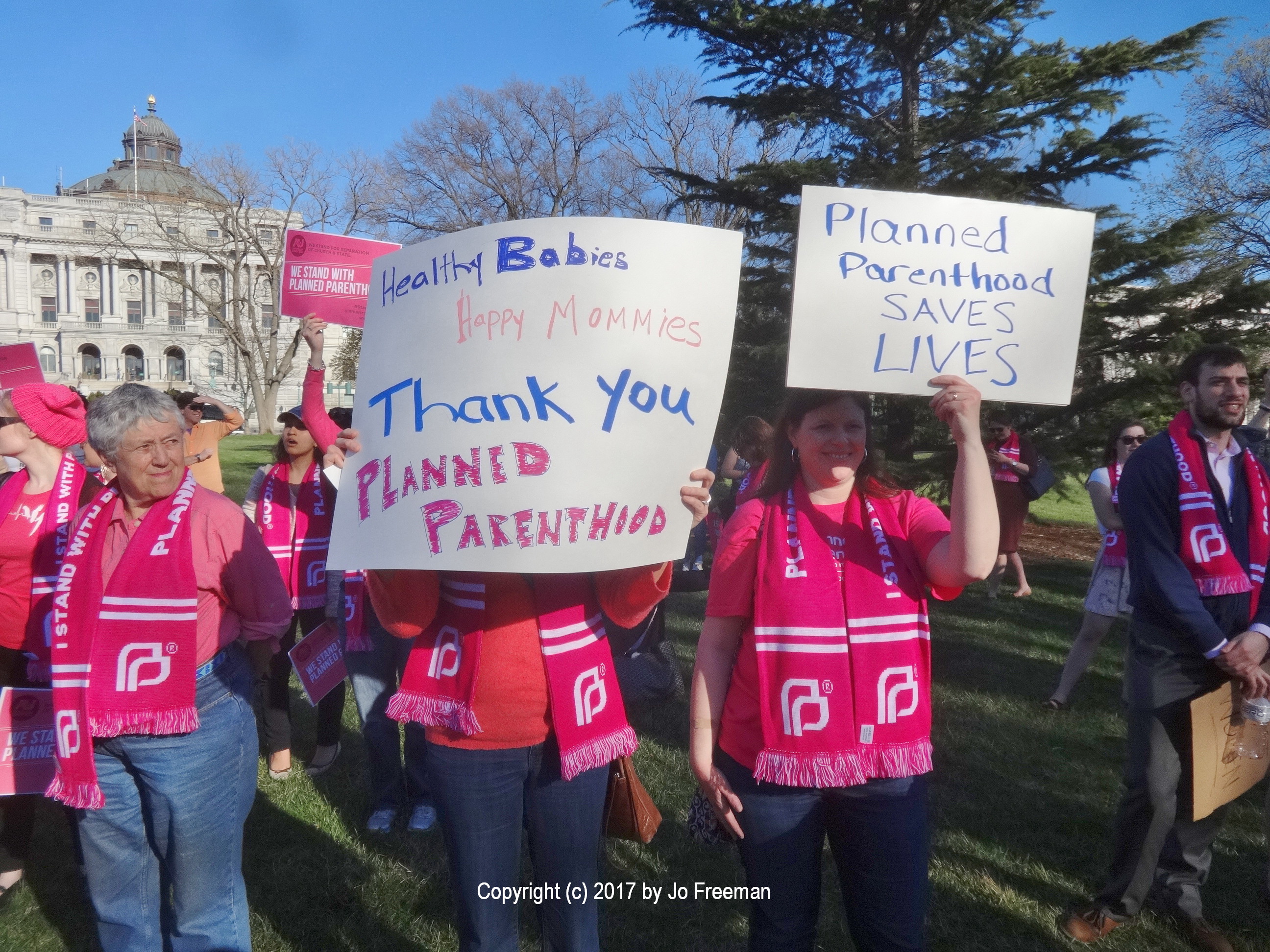 Roughly 500 women and a few men gathered on the east lawn of the US Capital building on March 29 to declare that “I Stand With Planned Parenthood.” The Senate was due to vote on a resolution to permit the states to deny federal family planning funds to health care centers which provide abortions, albeit with other funds. In January, Obama’s Secretary of Health and Human Services had issued a regulation forbidding the states from doing this so that Planned Parenthood would continue to get family planning funds.