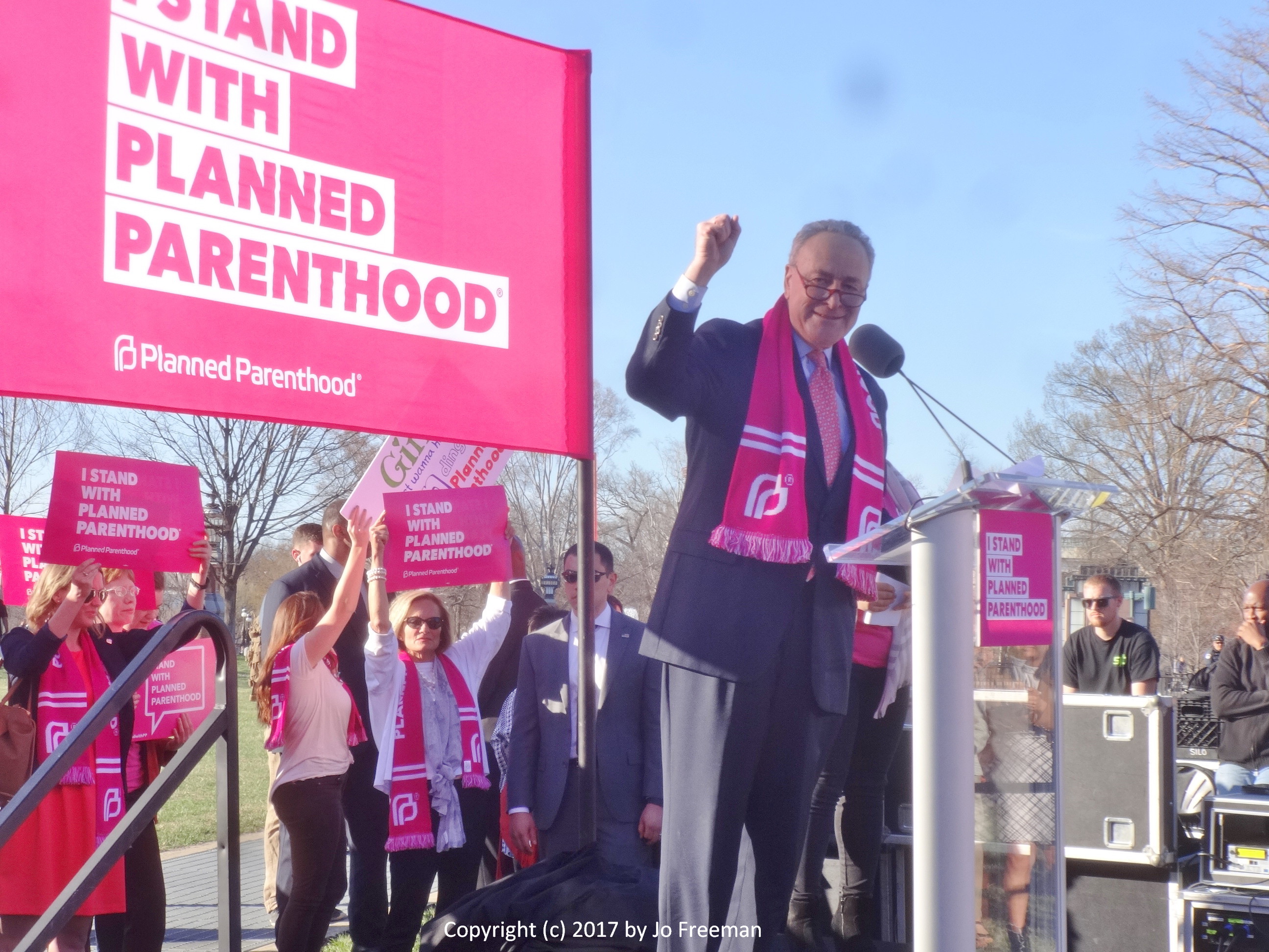 Senators Patty Murray (D WA) and Minority Leader Chuck Schumer (D NY) told cheering crowds that they wouldn’t let that happen. House Minority Leader Nancy Pelosi (D CA) was expected to close the rally, but didn’t make it. Instead PP President Cecile Richards urged its supporters to continue the fight. In between, several younger women shared their stories of being helped by PP and a group of ministers spoke about all the things PP did for women.