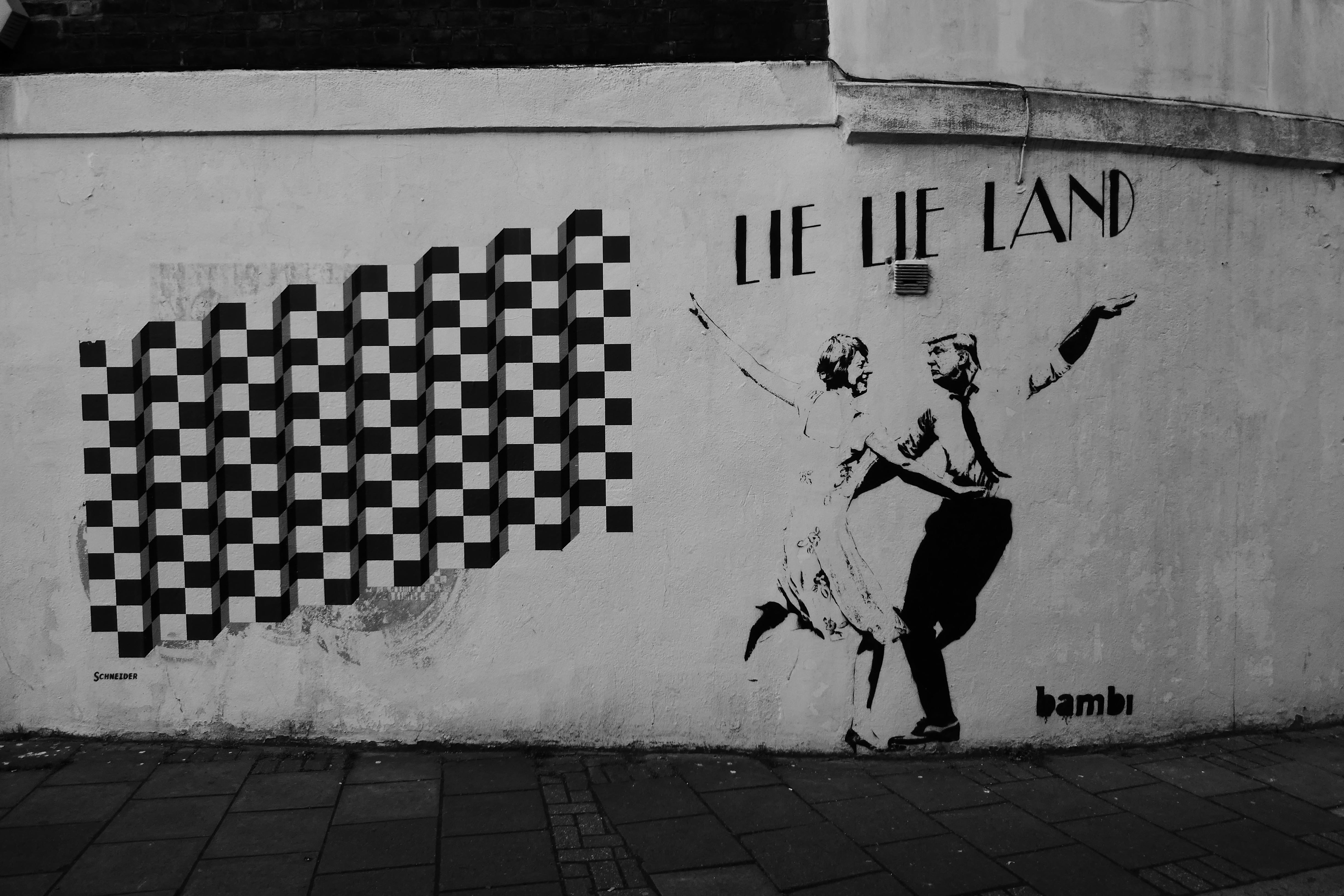 For all the violence that Trump’s outbursts inflict upon language, they are shadowed by concrete actions that provoke a very different register of disbelief: the absurdity of post-truth nonsense corroborates the monstrosity of unlawful governance. Trump’s performative utterances of his paragon pro-Semitism echo his policy endorsements of an Israel-Palestine one-state solution, while his puzzling declarations of his visible anti-racism hang heavy against the horrendous surge in hate crimes since his election. (“Number one, I’m the least anti-Semitic person you’ve ever seen in your entire life. Number two, racism, the least racist person.”)