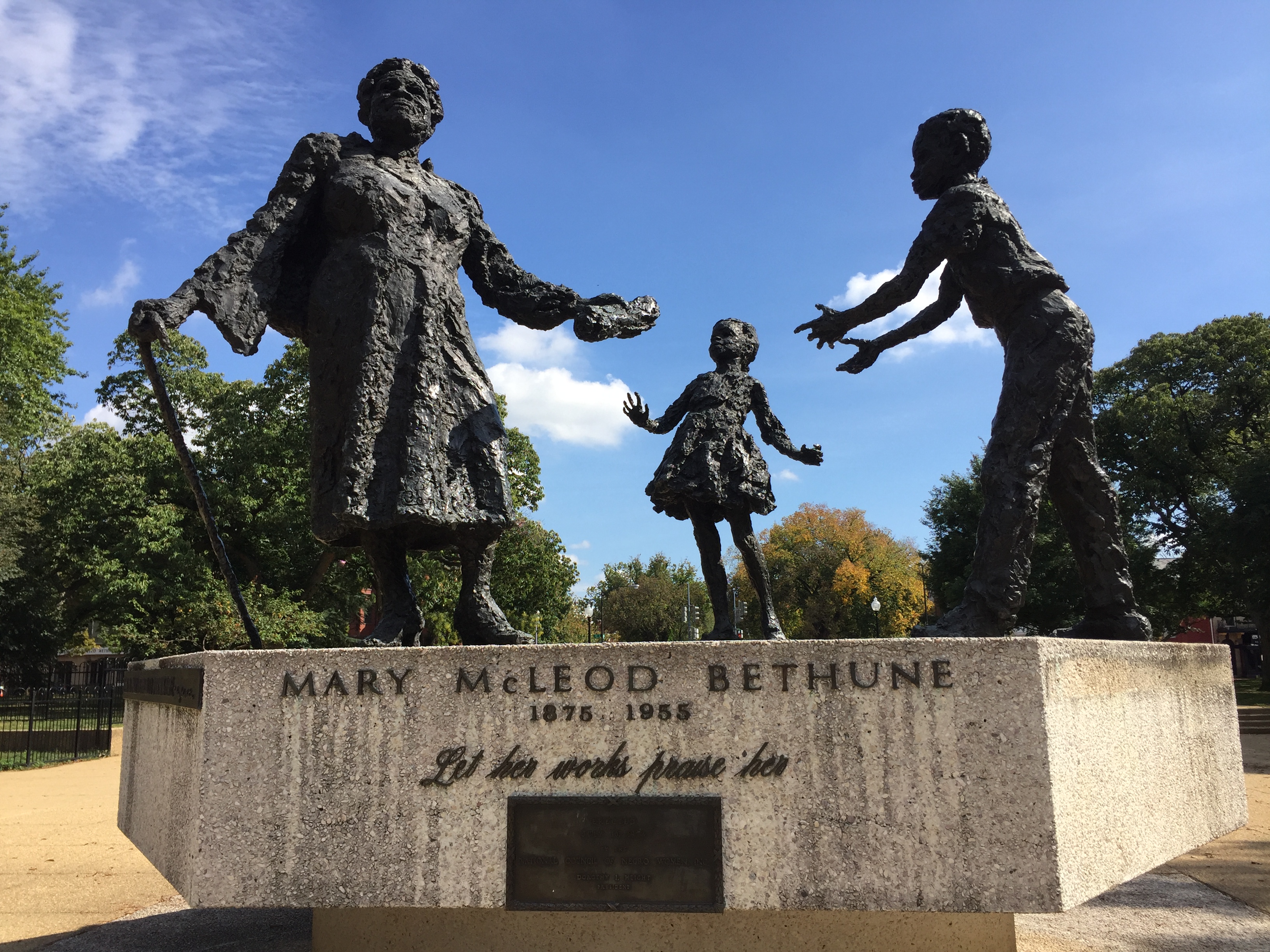 Those reasons, however, may not be enough anymore. Lincoln, of course, has his own larger-than-life memorial on the National Mall – a monument initially to saving the Union but one equally symbolic, thanks to its role in the 1963 March on Washington and other civil rights rallies, of the long black freedom struggle. Other monuments in the city, including the African American Civil War and Dr. Martin Luther King Jr. memorials – not to mention the new National Museum of African American History and Culture – better capture the agency black historical actors had. African American donors played a significant role in funding all three. And then there is the presence of the Bethune statue, built at the height of the Black Power movement. As my students observed, several multiracial groups of children swarmed the two playgrounds beside Bethune’s memorial – an appropriate extension of her lifelong work in education. But for many of the children playing, they first had to walk by the kneeling slave. What an odd, perhaps confusing image for them to encounter on the way to play.