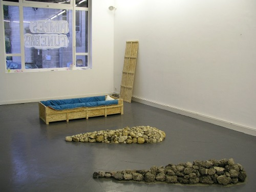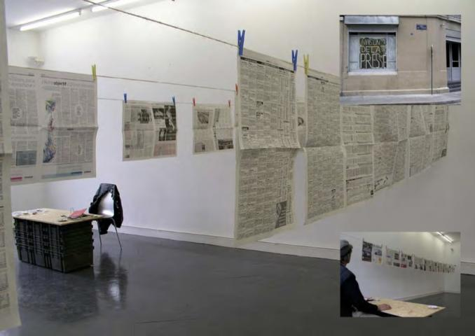 Francesco Finizio’s installation “How I Went In & Out of Business for Seven Days and Seven Nights” recounts the weeklong performance that took place in the ACDC Gallery in Bordeaux in October 2008. For a week, right after the bankruptcy of Lehman Brothers, Finizio opened and closed as many businesses as possible. The businesses that succeeded one another during this period were created from a limited vocabulary of poor materials. In seven days, a total of twelve businesses were opened. The gallery space was in a situation of almost constant transformation. Businesses succeeded one another, each rising from the ashes of the previous one. The piece was not concerned with participatory practices — by making a scenario of the space, the potential of usage was already there. Finizio’s work did not entail engaged audiences performing their relational aesthetics in the installation, as was the case with so many works gaining recognition pre-2008. With its playful makeshift style, Finizio’s clever installation pushed a given situation to its breaking point, revealing the contradictory states and hidden dimensions of the economic world we live in. By proposing the familiar world as inside-out, Finizio’s work suggests a mode of operation that we can call counter-speculation. In the moment of a real estate crisis, revealed as credit crisis, exposed as sovereignty crisis (bailouts for the few and austerity for the many), Finizio outlines the spatial manifestation of speculation on a given site. His “How I Went In & Out of Business for Seven Days and Seven Nights” performs the flickering of space that we are so used to by now, with the convergence of the urban and digital through dating, renting and image sharing apps.