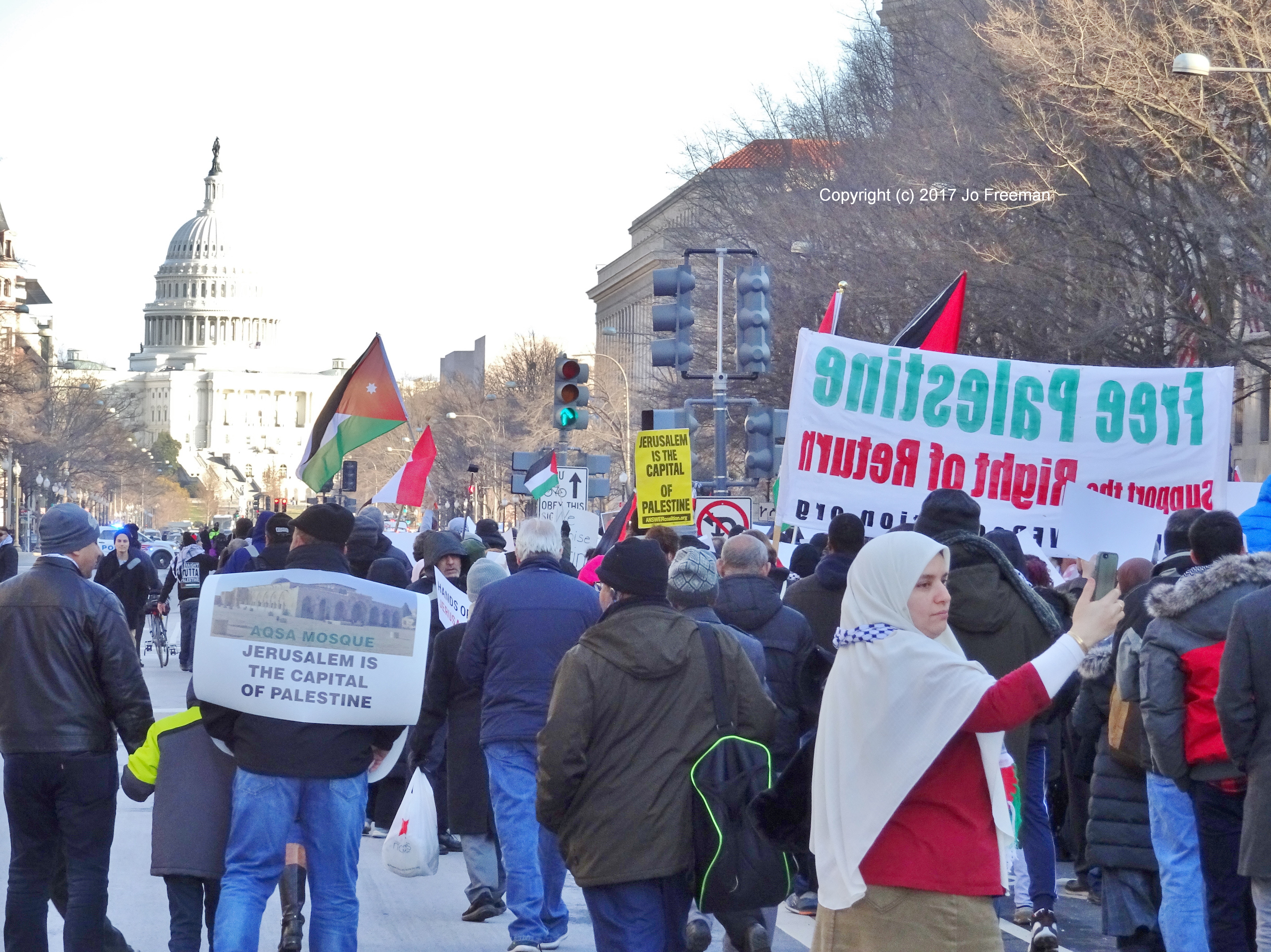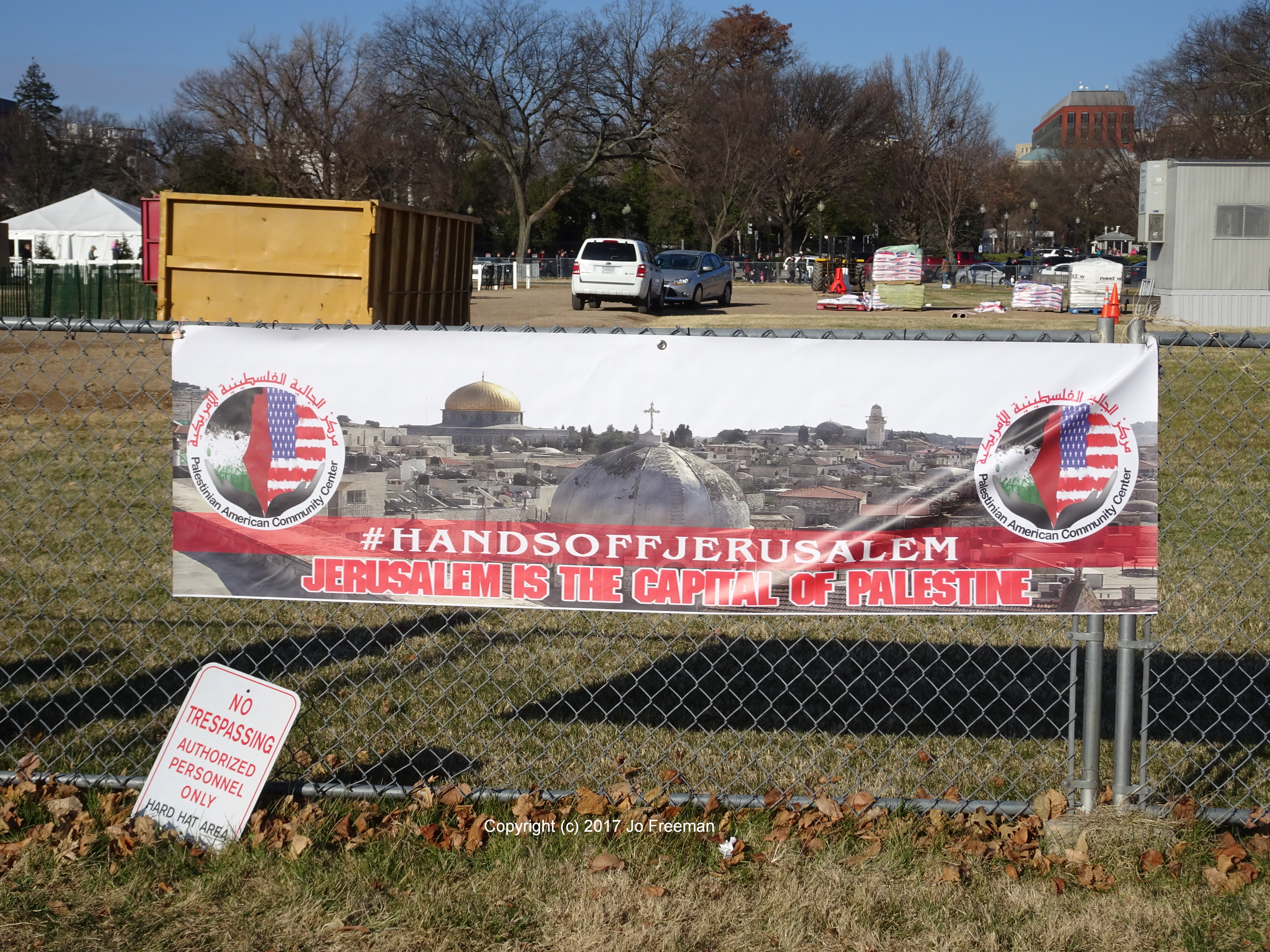 In the shadow of the National Christmas Tree and the National Menorah, they said Jerusalem was the capital of Palestine, not Israel.