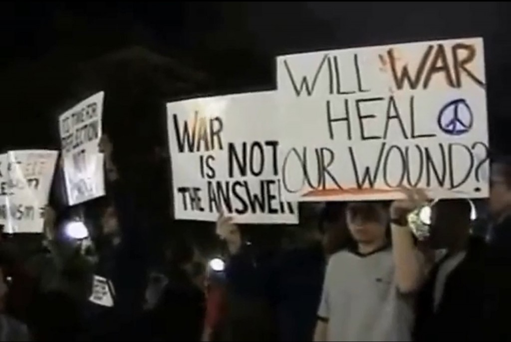 It strikes me now that the turn of the millennium, specifically post 9/11, brought us opportunities to reinvent ourselves in many ways, even if we weren’t looking for it. Perhaps because we weren’t. While the event of September 11, 2001 hit using different ways, all were unprepared. At first, we didn’t seem to know how to react to it and there was a sort of general paralysis embodied by mass speechlessness and communal silence. Then, there erupted many different waves of thoughts, a sort of push-pull vortex that engulfed us, ranging from overbearing demonstrations of patriotism to explicit anti-war movements and their aligned representations. I was one of the many at Union Square in the Fall 2001 experiencing and attempting to “capture” the responses of the many public demonstrations that followed that transformative event.
