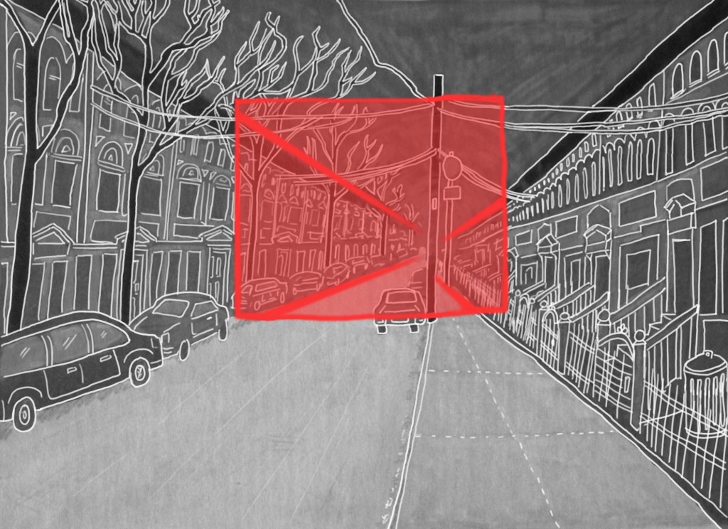 China Miéville’s science fiction detective novel, The City & The City, presents two fictional cities — each foreign to the other — which are so closely intertwined that they are literally cross-hatched into each other. Citizens of each city structure their entire lives around studiously avoiding the severe crime of stepping into foreign territory. The magical-realist geopolitics of this novel are less magical when one considers that real cities and towns are riddled internally with invisible borders, sometimes defined by and through technologies of surveillance and control. Access to space is already highly fraught with tensions over what is a privilege and what is a right. Apps like SketchFactor create a crowdsourced artifact — often reflective of their users’ racial biases, as critics have pointed out — and made visible the unspoken social boundaries that mark off the “sketchy” neighborhoods from the “respectable” ones. GPS-enforced rules that are being used to restrict people ranging from violent offenders to truant high schoolers to traffic law violators, by contrast, create borders but leave them invisible, while making them painfully felt by those bounded by them.