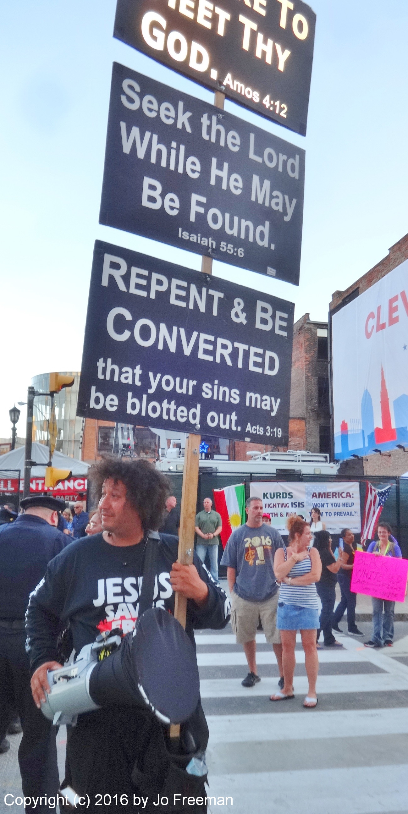 And the Jesus evangelists showed up too. What they lacked in numbers, they made up for in volume. Their bullhorns made it difficult for anyone else to be heard.