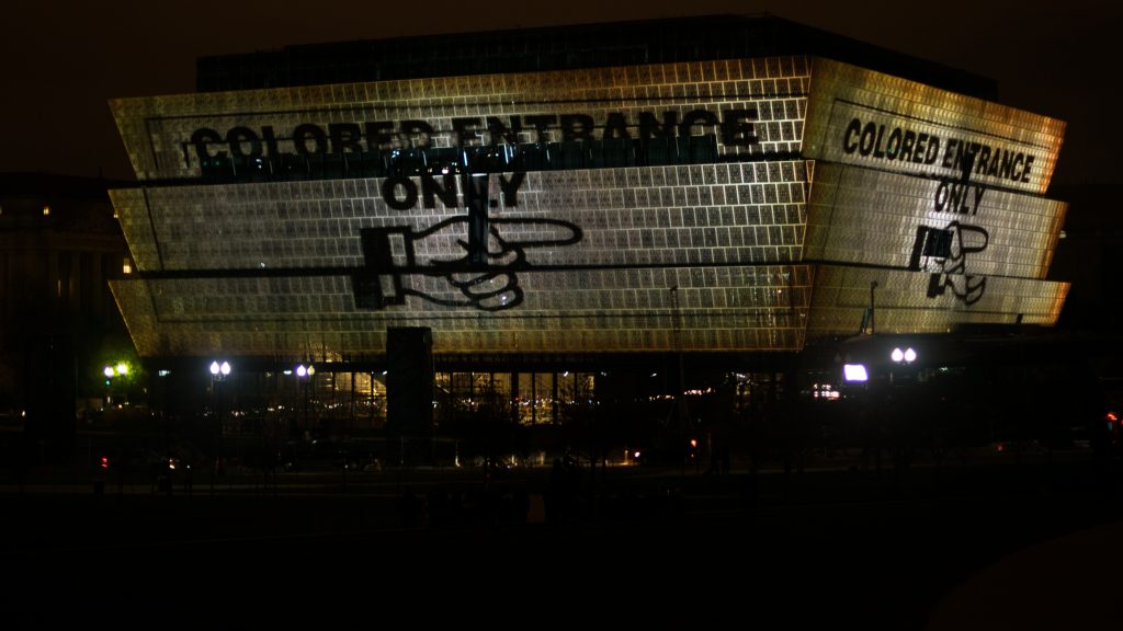 One of the most significant things to note about this shadow monument and the entire museum is that they are located on the National Mall. The Mall has long been a space where it is extremely difficult to challenge the orthodoxy of American exceptionalism. In the early 1980s, the design of the Vietnam Veterans Memorial prompted opponents to decry it “as a black gash of shame” and “a nihilistic slab of stone” that dishonored the troops. In 1995, a national backlash shut down a Smithsonian exhibit on the Enola Gay that sought to contextualize the atomic bombings of Hiroshima and Nagasaki. The museums and monuments that line the National Mall define the American narrative. That there is room in that story for the 2011 Martin Luther King Memorial and this new museum of African American history show that at some level, some portion of America is ready to acknowledge the contradictory legacies of racism, slavery, and white supremacy that still lie at the heart of the American story. It is a hopeful reaffirmation of the words in Langston Hughes’s famous 1936 anthem: