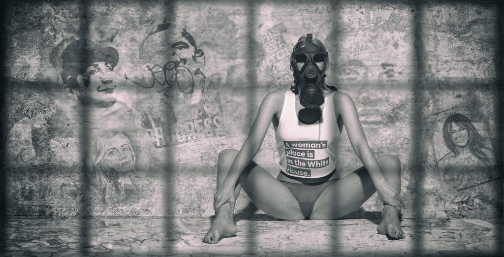 Though Trump lost 5 points in polls since the 2005 tape was released just one week ago (and 12 points among women over 45) the tough pill to swallow is that 38% of American voters still stand in support of the GOP candidate, despite not only allegations of sexual misconduct but outright incontrovertible evidence. (And personal communiqués on my Facebook page from childhood friends, male, staunchly report Trump to be the ‘lesser of two evils’ and deny that any ‘actual harm’ has been done.) Interestingly, Trump sails over Clinton by 25 points amongst white men without college degrees, and this subset of the population has complained that society is becoming ‘soft’ — parroting the tired trope that equates power with aggression, and femininity with weakness and passivity. Much of this same population regards women’s equality and gains in the workplace as discrimination against men. What is revealed through not only the tolerance of Trump’s antics and the defiant celebration of his crude and exploitive behavior, but also in the genuine surprise amongst many well-meaning men, is the banal prevalence of misogyny, suppression of women’s voices and experience, and cavalier acceptance of aggression toward women. We may be legitimately horrified, and agree with President Obama that basic human decency would lead us to shun Trump’s words and actions, but the fact that this candidate appeals to a good portion of the population must not fade into the background, nor the fact that men on the side of good had no real sense of their own blindness to these pervasive phenomena. Let us be clear: Trump is a symptom, not a gross aberration. Beyond the vacuous promise of jobs and revived greatness, Trump speaks to an enduring sexist aggression and entitlement, building in step with feminist gains of recent decades (no doubt analogous to xenophobic hatred of ‘job-stealing’ immigrants). As Olga Khazan wrote in the Atlantic just a few days ago, “Men who fear the rise of women can bask in the reflected glory of Trump’s testosterone-revved, macho persona.” And women, like the one pictured at the Trump rally wearing the hand-made T-shirt saying “Trump can grab my…” with an arrow pointing toward her crotch, can preserve their fantasied relation to power by siding with the aggressor and likewise diminishing the gravity — and personal affront — of Trump’s behavior.