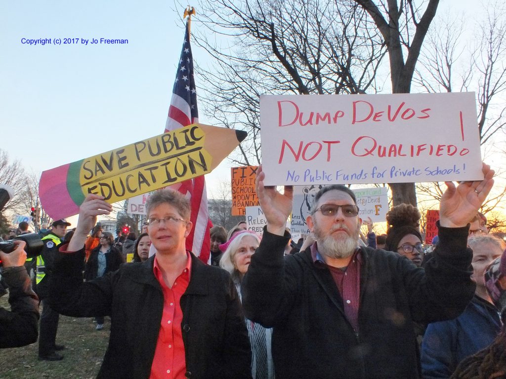 At the time of the rally, all 48 Democrats and 2 Republicans had vowed to vote against her confirmation. The Senate was engaged in a non-stop debate. However, when it was all over, there were still 50 votes on each side. Vice President Mike Pence, in his capacity as President of the Senate, broke the tie and Betsy DeVos was confirmed.
