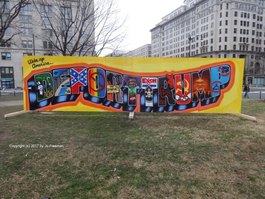 By the time I got to Columbus Circle in front of Union Station, the Festival of Resistance was pretty much over. Most of those who had come were marching to McPherson. They left right before the crowds of Trump supporters who had tickets to stand and watch the inauguration on jumbotrons reached Union Station to go home.