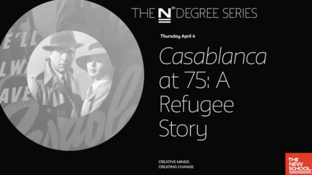 This event, which focuses on the refugee theme of the film, includes a screening of Casablanca and a conversation with Noah Isenberg, Lang professor of Culture and Media and author of We’ll Always Have Casablanca: The Life, Legend, and Afterlife of Hollywood’s Most Beloved Movie (Norton, 2017), and Alexander Aleinikoff, director of the Zolberg Institute on Migration and Mobility at The New School. Moderated by A.O. Scott of The New York Times.