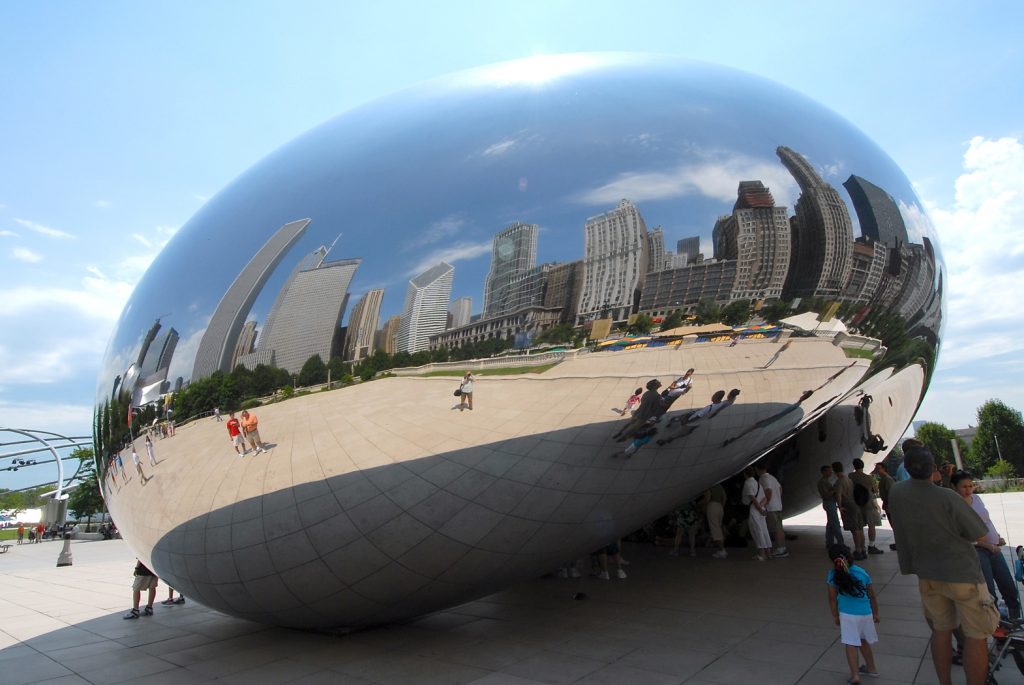 Little by little, one huge image after the other, he reveals details about his own processes. Repetition, rituals, and rigor. And the result? Generally large forms and their interior. You can walk into Tarantantara and Leviathan [slide] and once you’re inside [next slide] the outside has completely changed. It’s challenging to think about Kapoor’s works and not superimpose the image of its location. I try but Tarantantara is the Baltic Centre for Contemporary Art in Newcastle and Leviathan is the Grand Palais in Paris. ‘Place’ in this thought experiment is both part of and particular to the piece. [Next slide] In my head, I say Cloud Gate and by the time I finish “pronouncing” the T, Chicago has trickled into the piece’s name. Scale, form, exterior, interior, place.
