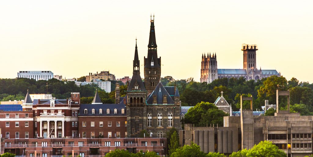 Founded in 1789, Georgetown University is the oldest of U.S. Jesuit universities. It sits near the heart of Washington, DC — about 2.5 miles from the Lincoln Memorial and the National Mall (a 45-minute walk). For its first 80 years, Georgetown struggled with its finances. The aforementioned slave sale took place in 1838, during one of those periods of strain. The 272 slaves were sold to plantations in the deep South. Later, in the 1870s when Georgetown found stable financial footing, its president, Patrick F. Healy, S.J., was, ironically, an African American and a former slave.