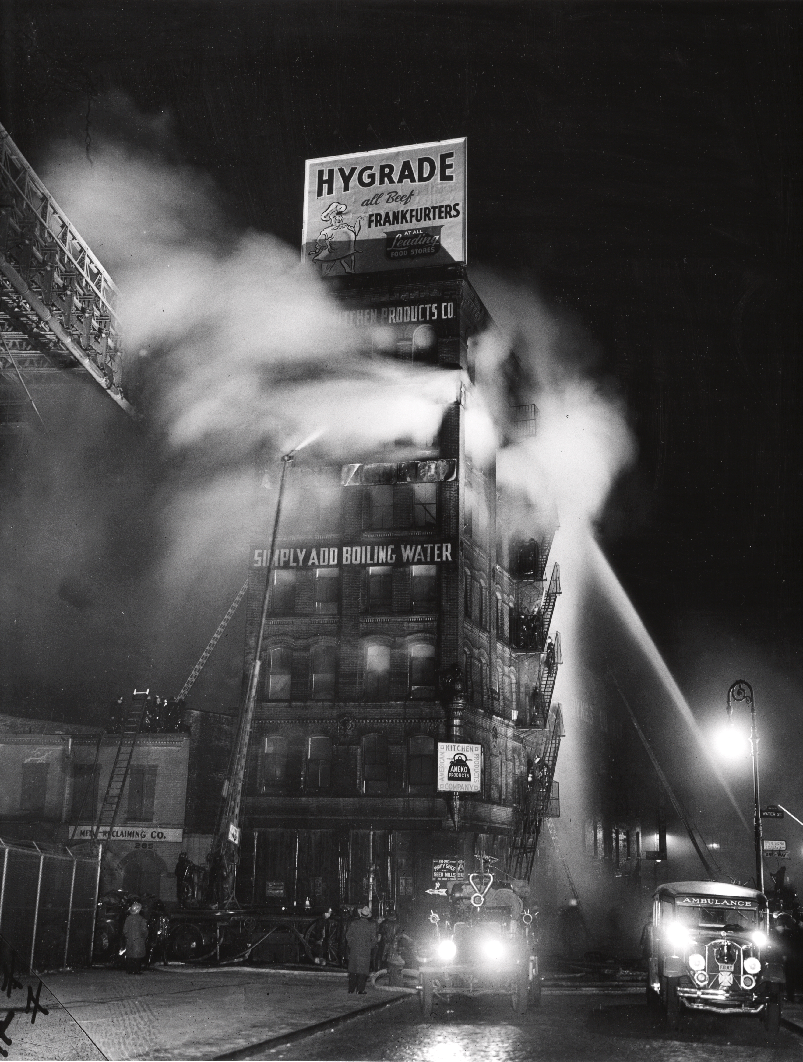The man himself was real, and as an individual maker of pictures he was both innately talented and profoundly skilled. But we will never quite know if he was merely first among equals. News photography during the early part of Weegee’s career was almost always anonymous. When credits did appear, most of the time they attached pictures not to people but to institutional entities: the Associated Press, International News Service, Acme Newspictures. Besides, in the 1930s, virtually no one thought this stuff was art. It was made on demand, for the next day’s edition, and if it wasn’t quite a disposable commodity, it was pretty close. “Spot news,” it was called, and even the work of a good photographer would be filed the next day in the paper’s morgue, kept on hand in case the subject reappeared in the news. Unless it depicted something of ageless, recurring interest (the burning Hindenburg, say, or Babe Ruth as he put a home run ball in the seats), a picture might not be reprinted for five years or fifty. Most often, it would never be seen again. A lot of news pictures eventually got thrown away.