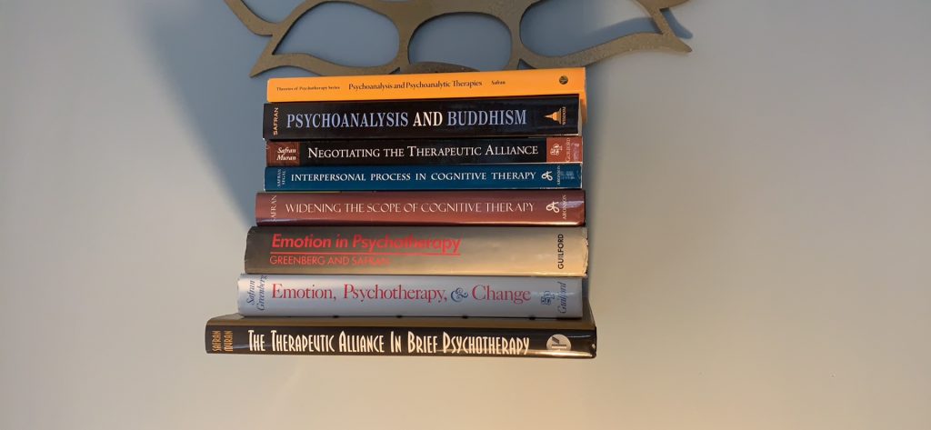 There will come a time, perhaps thirty to forty years from now, where the faculty in our clinical psychology faculty group will no longer include people Jeremy helped in critical ways to appoint, promote or tenure, when clinical psychologists in the city will no longer have direct memories of training and supervision from Jeremy, people may then wonder “Who was Jeremy Safran?” Trisha, in thinking about this Reading Room, considered this question and worked with us in preparing a plaque for display in this Reading Room, providing a synopsis of Jeremy’s amazingly productive life, and including a photo of Jeremy smiling, about to break out in laughter, holding two puppets, one of Sigmund Freud and one of the Buddha.