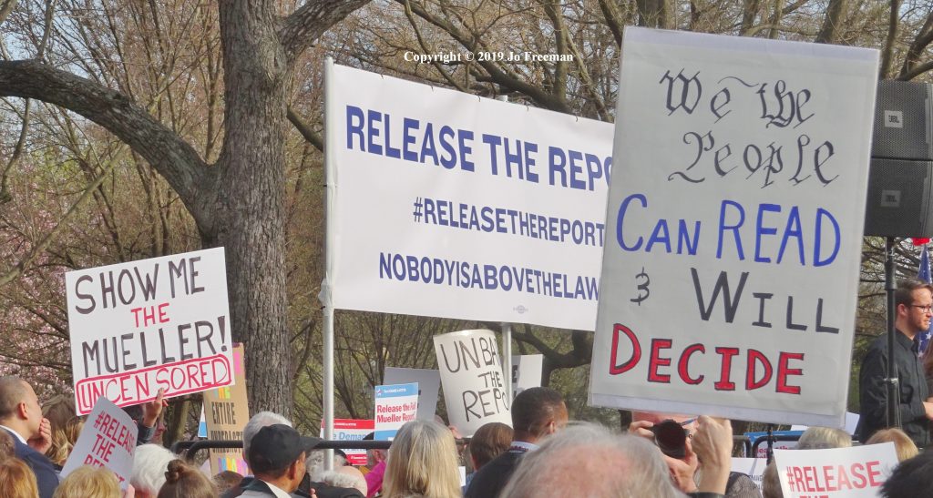 New York Congressman Jerry Nadler was the main speaker. Now that the Democrats control the House, he is the Chair of the House Judiciary Committee. The day before the rally, his Committee approved subpoenas for the entire report.