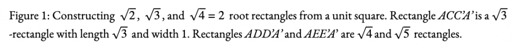 . In the Diagonal, Hambidge describes how these root rectangles can easily be constructed using traditional ruler-and-compass techniques, as shown in Figure 1.