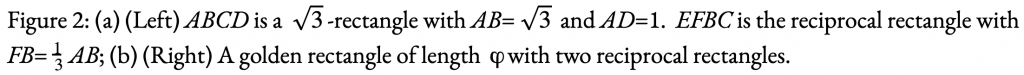 The significance of the reciprocal rectangle stems from the fact that it is similar to the original rectangle; see angles in Figure 2(a). Thus the ratios of corresponding sides are equal, leading to the relationship