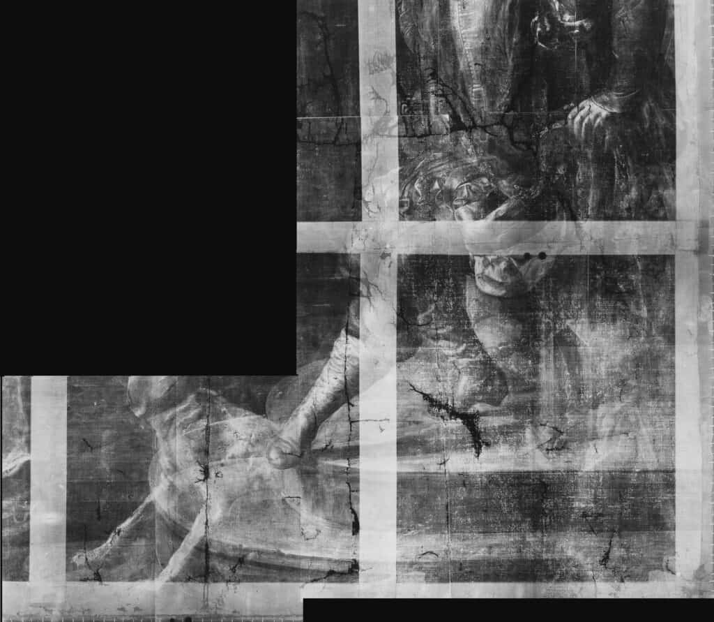 An x-radiograph of Artemisia Gentileschi’s Esther Before Ahasuerus (ca. 1620s) reveals a servant of African descent restraining a dog, both painted out by the artist | Metropolitan Museum of Art / Public Domain