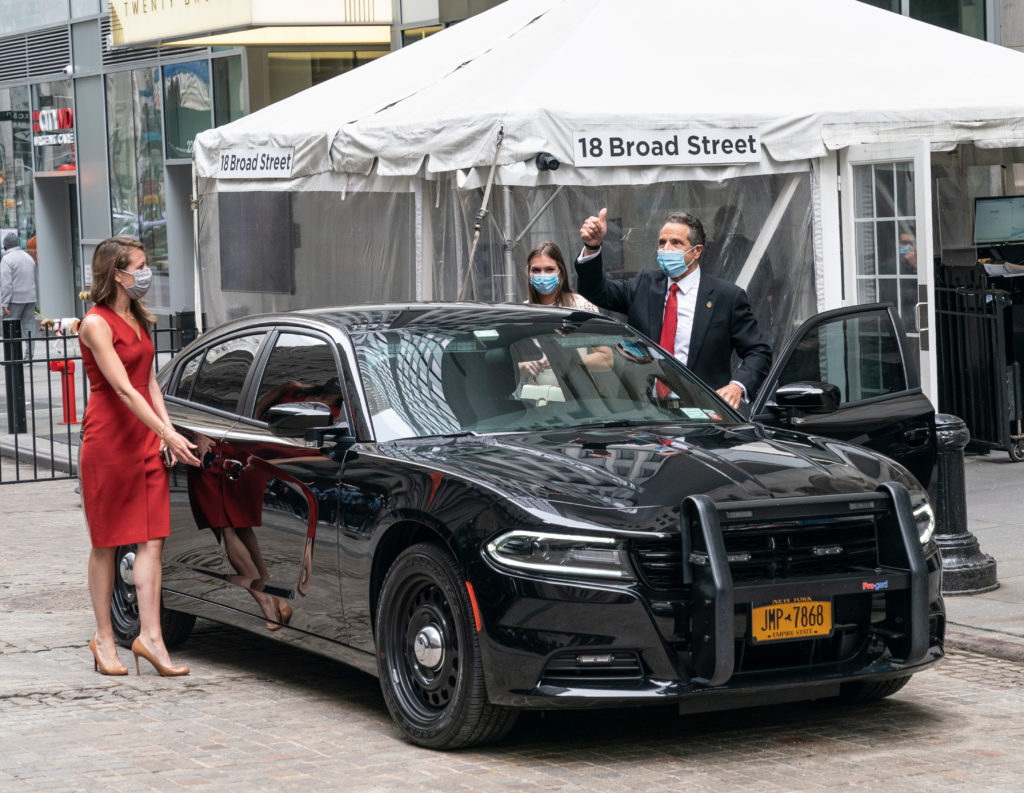 Governor Andrew Cuomo leaves the New York Stock Exchange after trading floor is reopened, May 26. Photo credit: lev radin / Shutterstock.com.