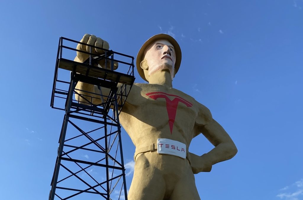 That’s how one resident of Tulsa, Oklahoma, reacted to the city repainting a seventy-five-foot statue of an oil driller, erected in 1966, to look like Tesla CEO Elon Musk. Tulsa is reportedly on the short list—along with Austin, Texas—for a new Tesla Cybertruck factory, so local leaders are pulling out all the stops to woo the famously eccentric and egomaniacal businessman.